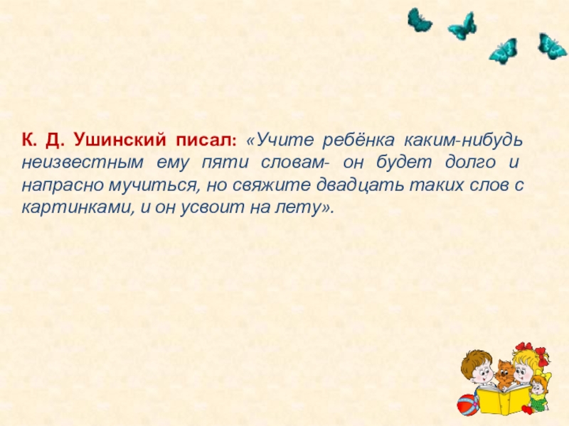 К. Д. Ушинский писал: «Учите ребёнка каким-нибудь