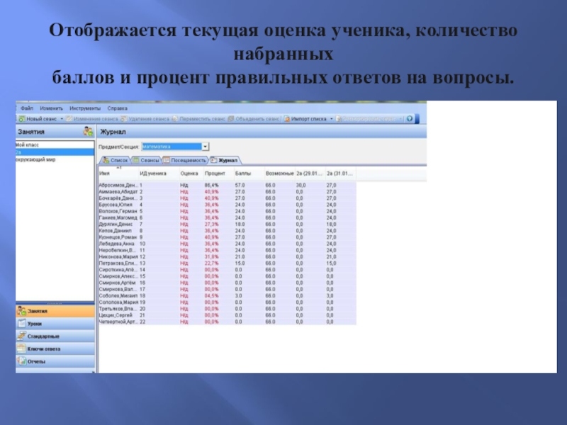 На вкладке «Отметки» представлена статистика проведенного сеанса. В поле «Статистика» указаны основные показатели сеанса.