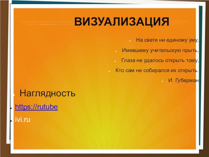 Это сайт презентаций, где можно хранить и обмениваться своими презентациями, докладами, проектами, шаблонами в формате PowerPoint с другими пользователями. Мы помогаем школьникам, студентам, учителям, преподавателям хранить и обмениваться учебными материалами.