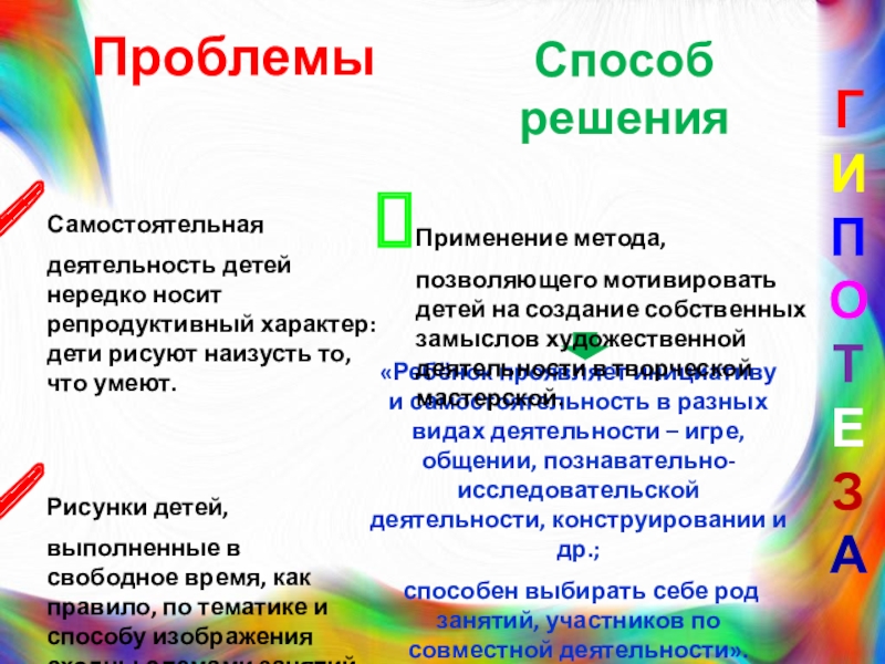 Применение метода, позволяющего мотивировать детей на создание собственных замыслов художественной деятельности в творческой мастерской.