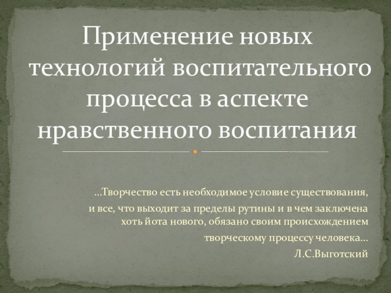 Применение новых технологий воспитательного процесса в аспекте нравственного воспитания