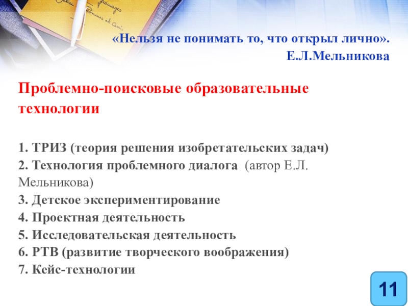«Нельзя не понимать то, что открыл лично». Е.Л.Мельникова