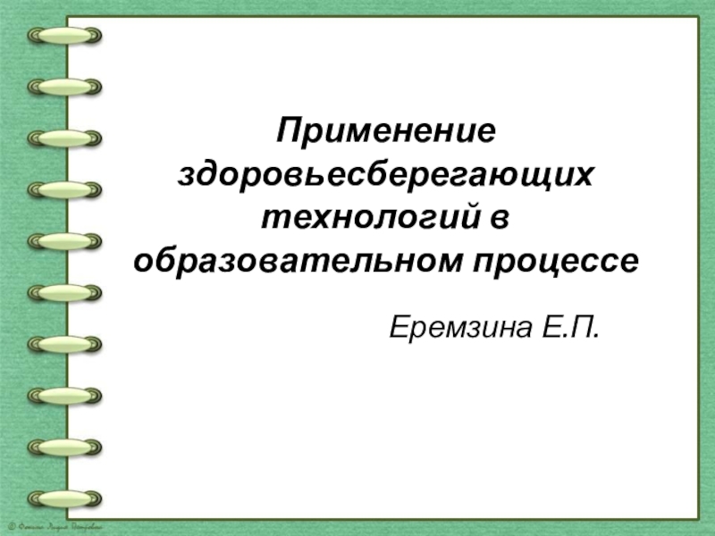 Применение здоровьесберегающих технологий в образовательном процессеЕремзина Е.П.
