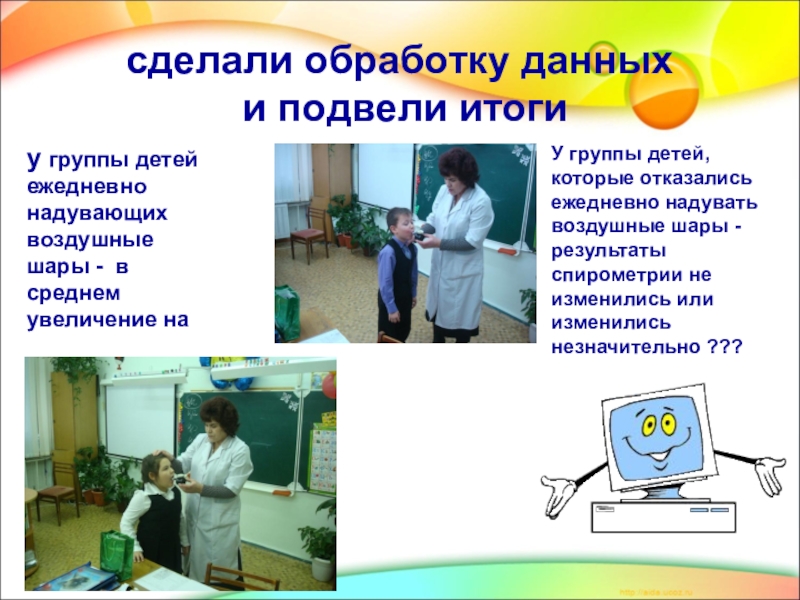 у группы детей ежедневно надувающих воздушные шары - в среднем увеличение на