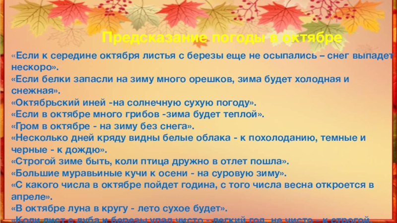«С какого числа в октябре пойдет година, с того числа весна откроется в апреле».