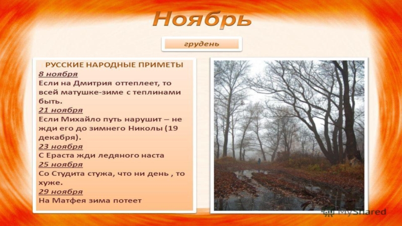 Ноябрь - ворота зимы: он ей родной батюшка.