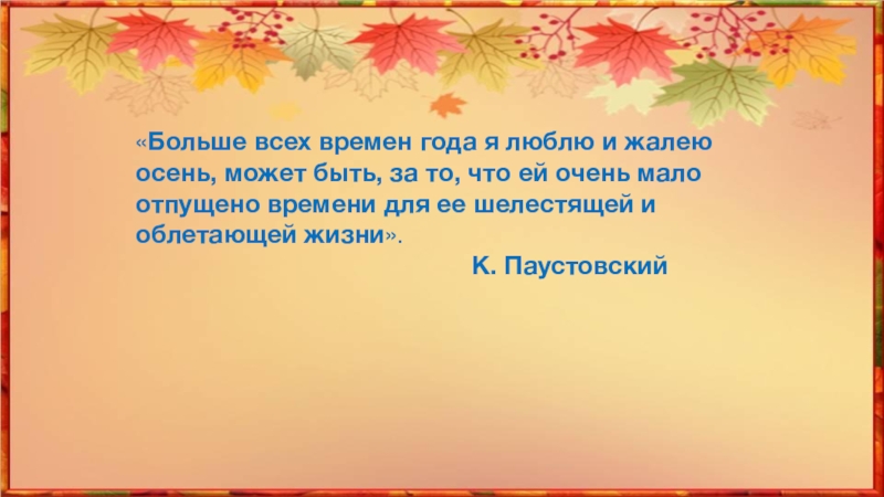 Слайд 2«Больше всех времен года я люблю и жалею осень, может быть,