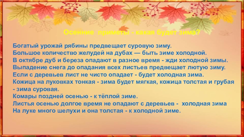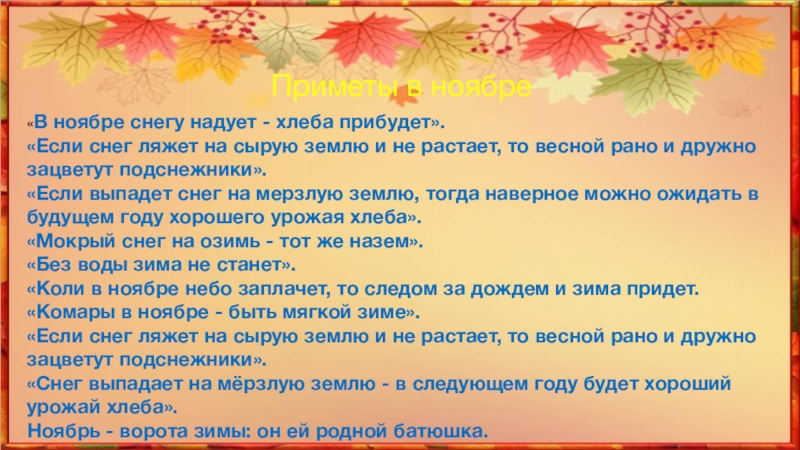 «Поздний листопад - к суровой и продолжительной зиме»;