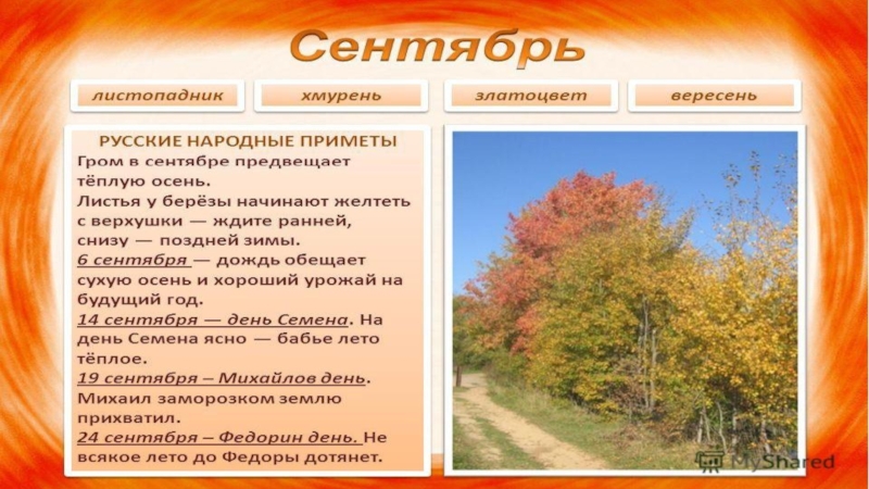 «В сентябре одна ягода, да и та горькая рябина, зато хоть холоден сентябрь, да сыт»;