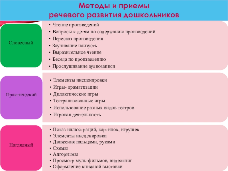 том, что язык усваивается в процессе его употребления, речевой практики. Речевая активность является одним из основных условий своевременного речевого развития ребенка. Повторность употребления языковых средств в меняющихся условиях позволяет выработать прочные и гибкие речевые навыки, усвоить обобщения. Речевая активность – это не только говорение, но и слушание, восприятие речи. Поэтому важно приучать детей к активному восприятию и пониманию речи педагога. На занятиях следует использовать различные факторы, обеспечивающие речевую активность всех детей: эмоционально-положительный фон; субъект-субъектное общение; индивидуально направленные приемы: широкое использование наглядного материала, игровых приемов; смена видов деятельности; задания, обращенные к личному опыту, и др.