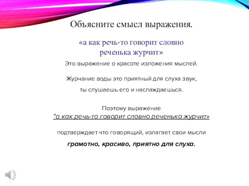подтверждает что говорящий, излагает свои мысли грамотно, красиво, приятно для слуха.