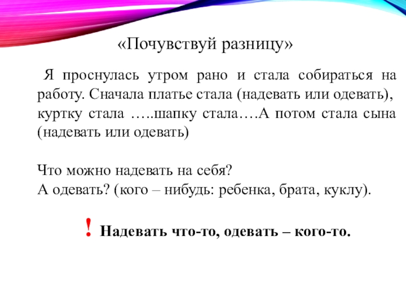 Сначала платье стала (надевать или одевать), куртку стала …..шапку стала….А потом стала сына (надевать или одевать)