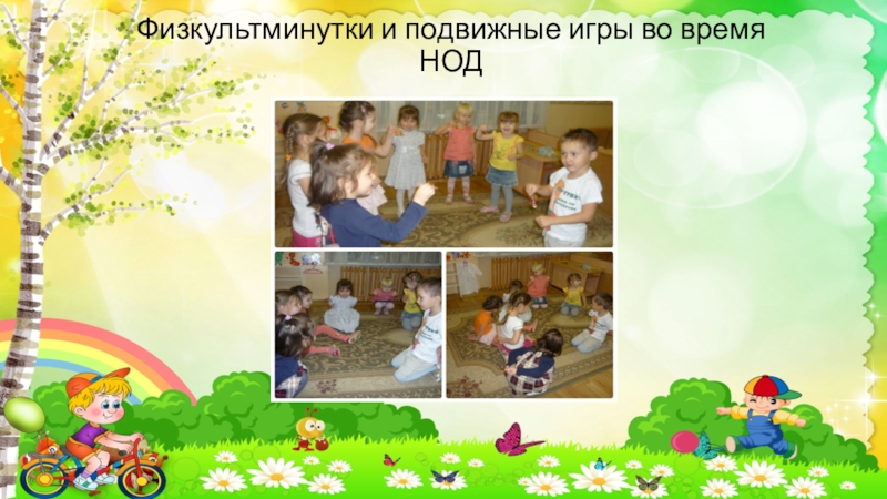Слайд 11Физкультминутки и подвижные игры во время НОД