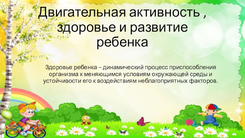 Слайд 9Двигательная активность , здоровье и развитие ребенка