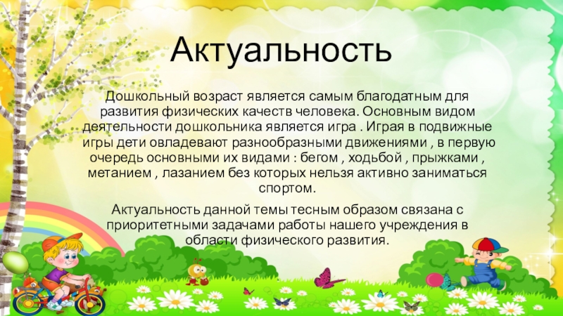 Дошкольный возраст является самым благодатным для развития физических качеств человека. Основным