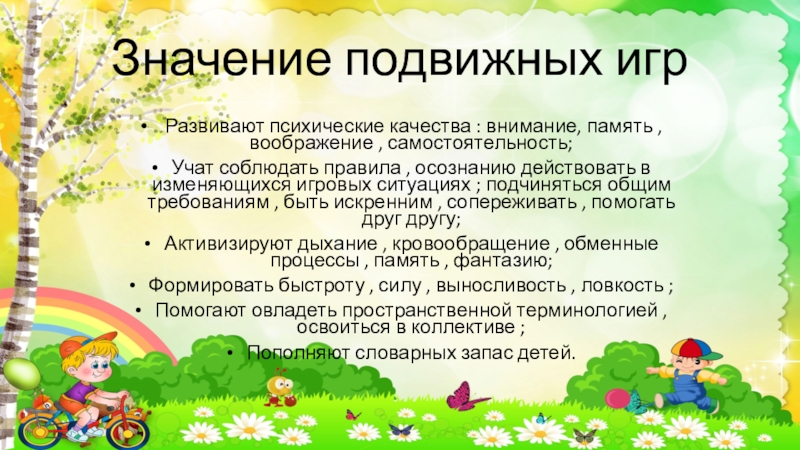 Подвижная игра имеет огромное значение для всестороннего развития ребенка : физического