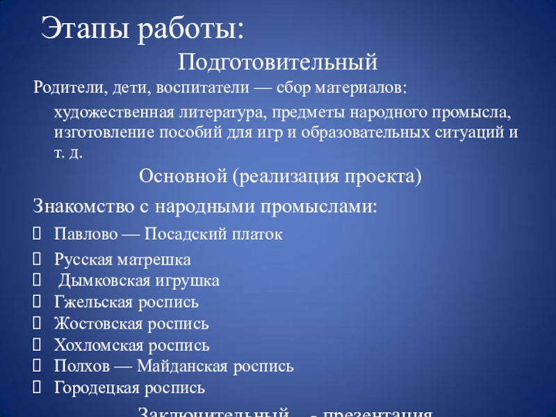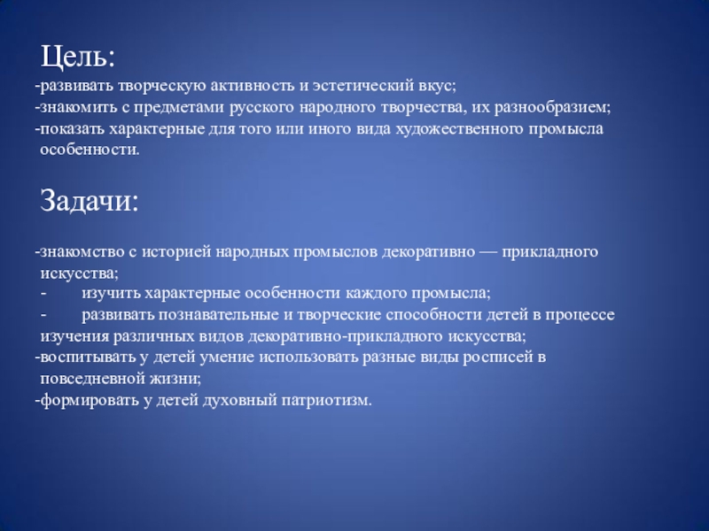 изучения различных видов декоративно-прикладного искусства;
