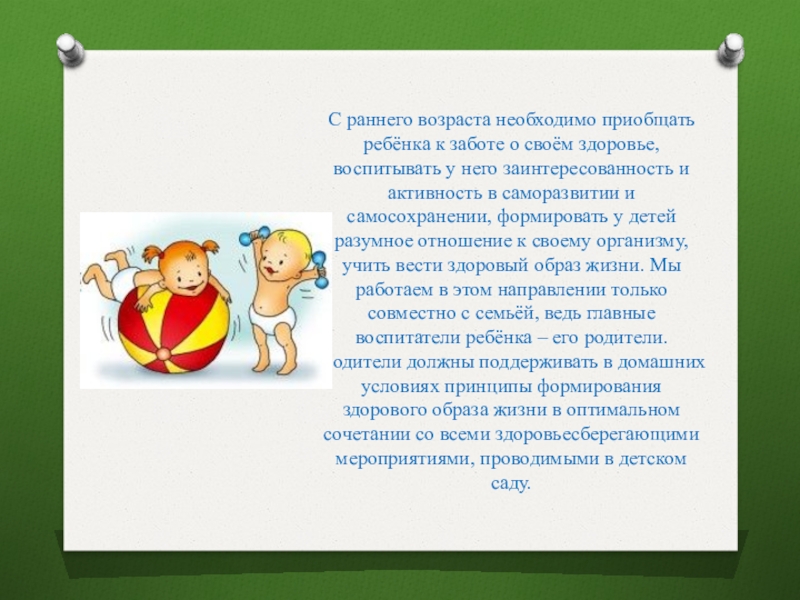Слайд 3С раннего возраста необходимо приобщать ребёнка к заботе о своём здоровье,