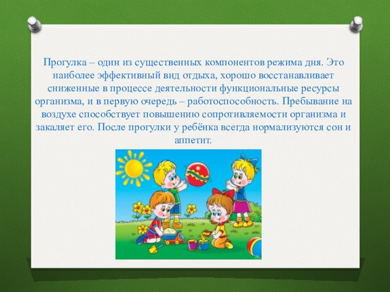 Слайд 15Прогулка – один из существенных компонентов режима дня. Это наиболее эффективный