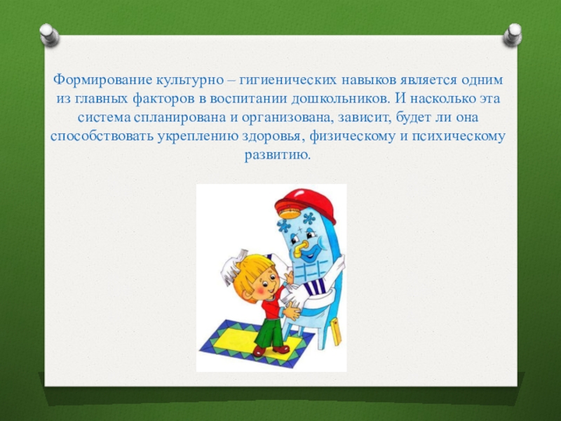 Слайд 10Формирование культурно – гигиенических навыков является одним из главных факторов в