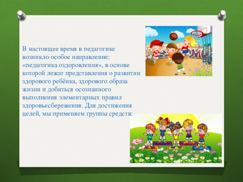Слайд 4В настоящее время в педагогике возникло особое направление: «педагогика оздоровления», в
