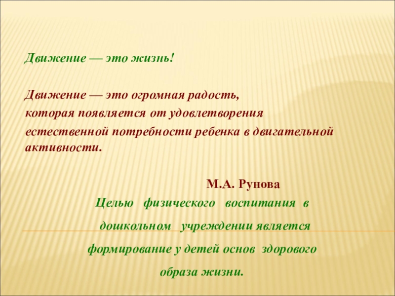 физическое развитие, совершенствование функций организма, повышение активности и общей работоспособности.