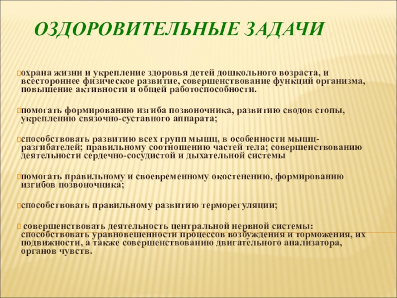 Слайд 3ОЗДОРОВИТЕЛЬНЫЕ ЗАДАЧИ