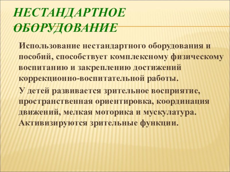 Использование нестандартного оборудования и пособий, способствует комплексному физическому