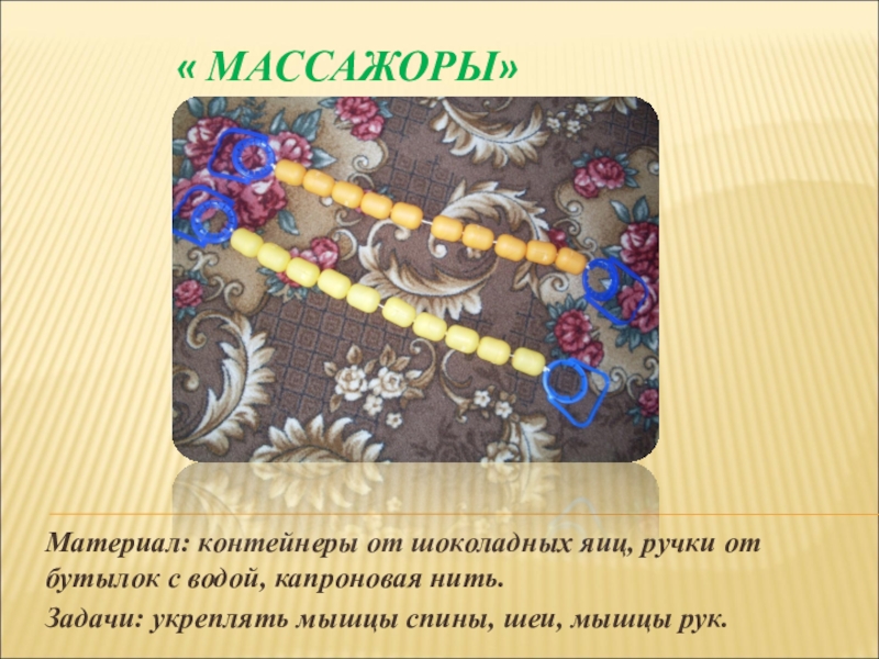 Задачи: используются для массажа рук, для занятий ОРУ, для подвижных игр.