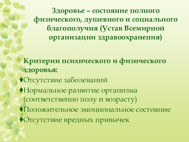 Критерии психического и физического здоровья: