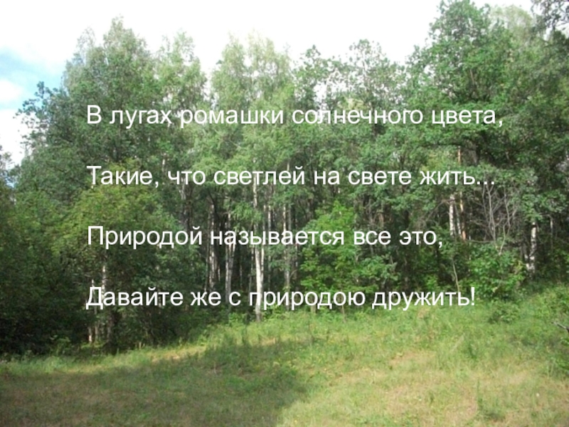 что светлей на свете жить... Природой называется все это, Давайте же с природою дружить!