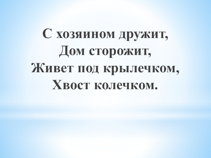 С хозяином дружит,Дом сторожит,Живет под крылечком,Хвост колечком.