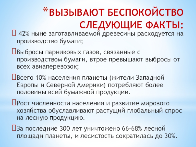 Всего 10% населения планеты (жители Западной Европы и Северной Америки) потребляют более половины всей бумажной продукции.