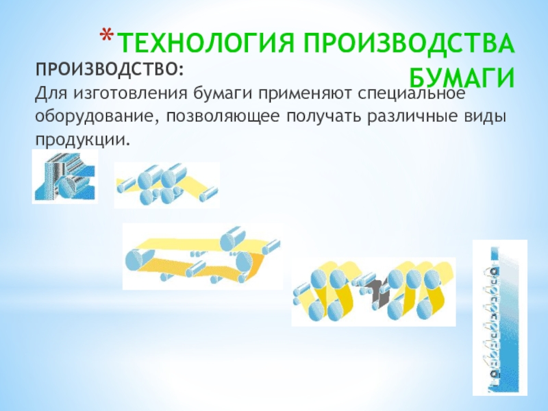 Слайд 8ТЕХНОЛОГИЯ ПРОИЗВОДСТВА БУМАГИ