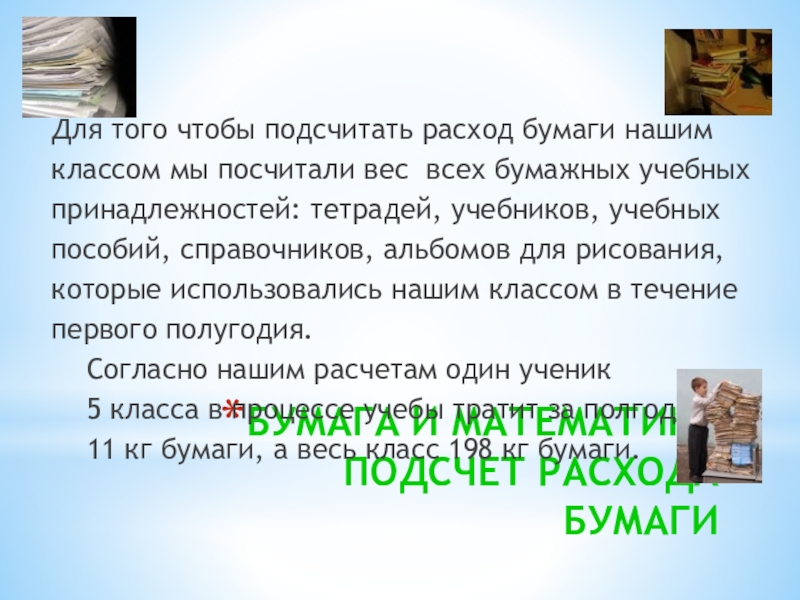 11 кг бумаги, а весь класс 198 кг бумаги.