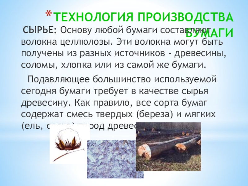 СЫРЬЕ: Основу любой бумаги составляют волокна целлюлозы.