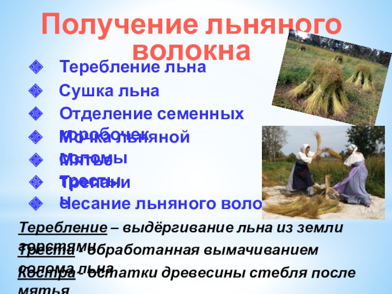 Теребление – выдёргивание льна из земли горстями