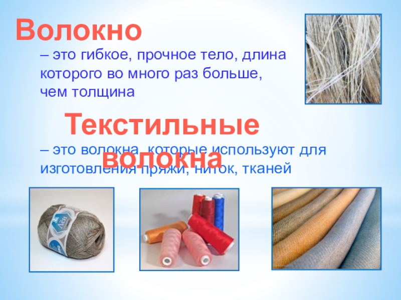 – это волокна, которые используют для изготовления пряжи, ниток, тканей
