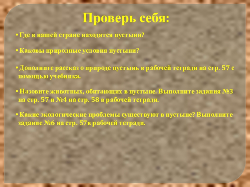 Дополните рассказ о природе пустынь в рабочей тетради на стр. 57 с помощью учебника.