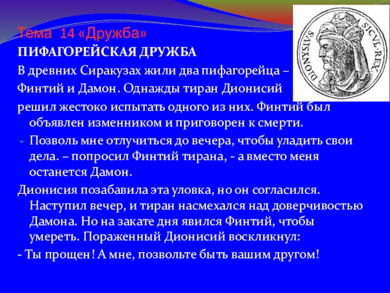 ПИФАГОРЕЙСКАЯ ДРУЖБА