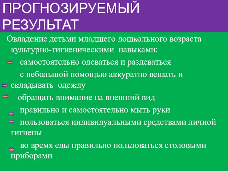 ►Формировать умения овладевать культурно-гигиеническими навыками и навыками самообслуживания