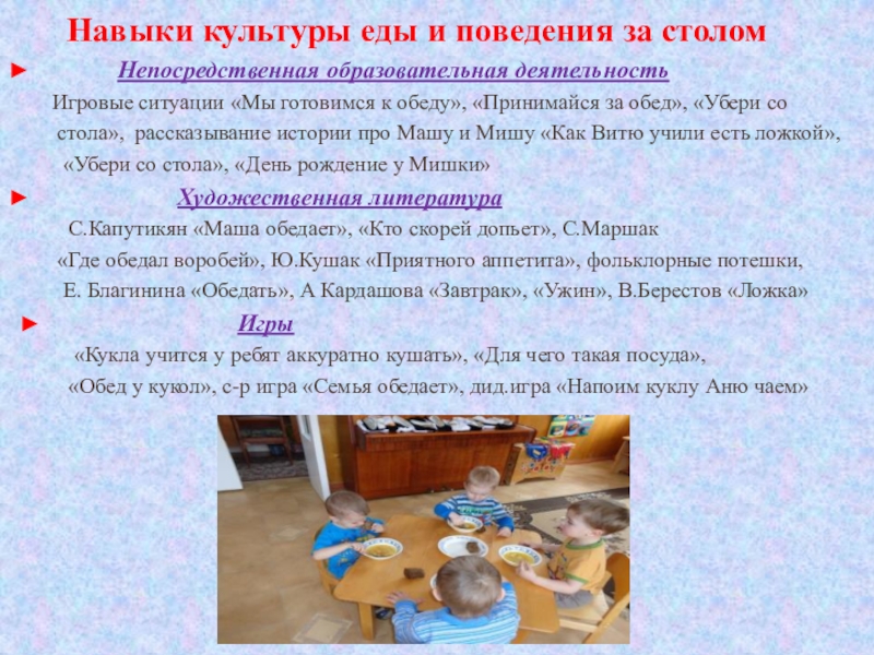 Слайд 11 Навыки культуры еды и поведения за столом