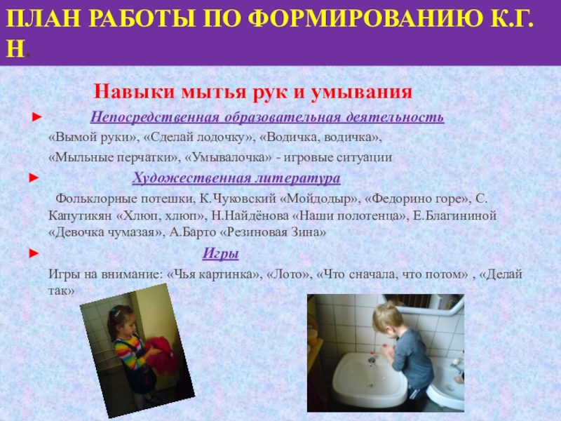 Слайд 9План работы по формированию К.Г.Н.