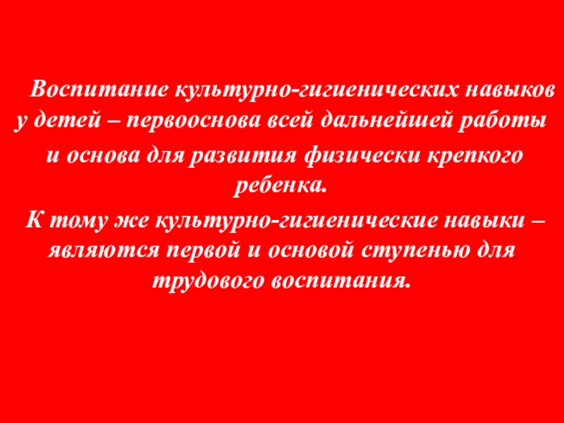 К тому же культурно-гигиенические навыки – являются первой и основой ступенью для трудового воспитания.