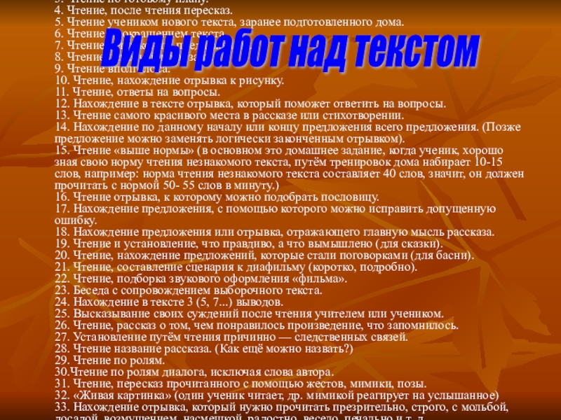 6. Чтение с сокращением текста. 7. Чтение цепочкой по предложению.