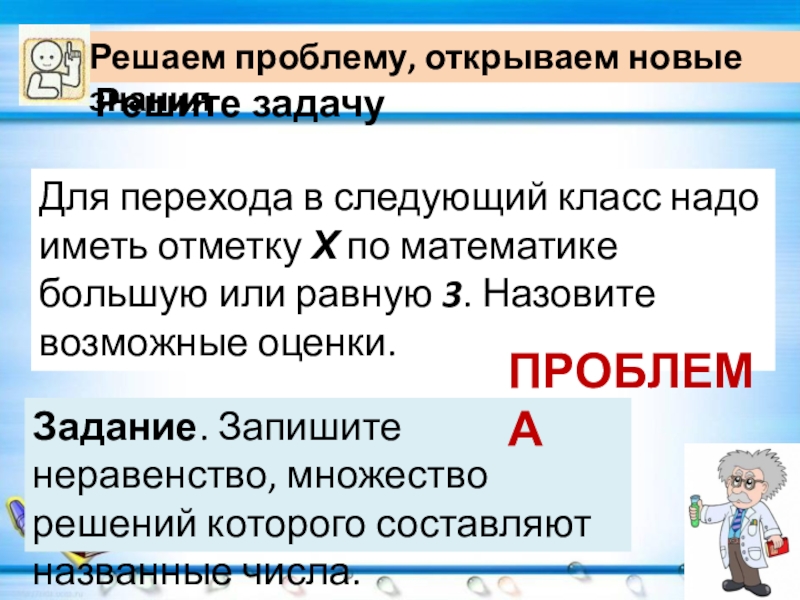 Задание. Запишите неравенство, множество решений которого составляют названные числа.