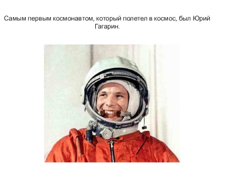 Слайд 5Самым первым космонавтом, который полетел в космос, был Юрий Гагарин.