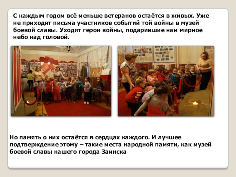 Но память о них остаётся в сердцах каждого. И лучшее подтверждение этому – такие места народной памяти, как музей боевой славы нашего города Заинска