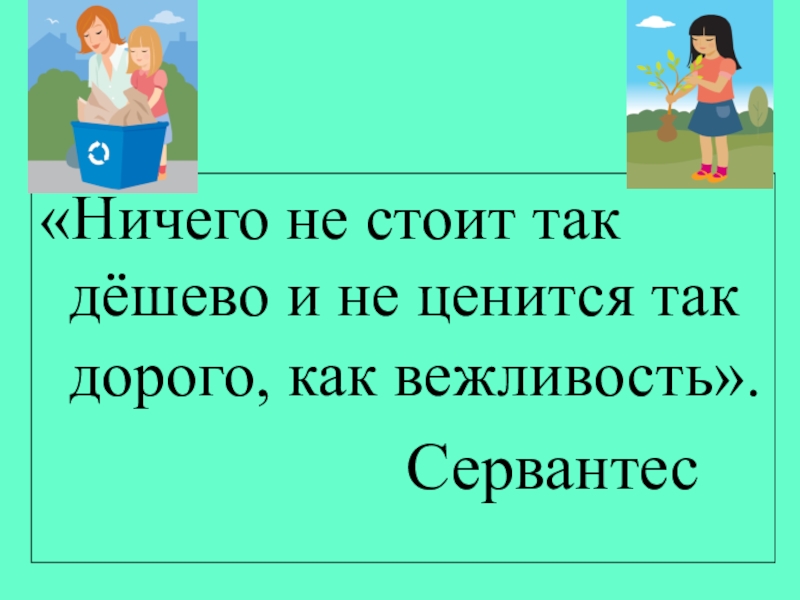 «Ничего не стоит так дёшево и не ценится так дорого, как вежливость». Сервантес