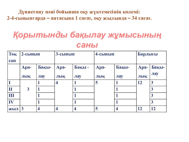 2-сыныпта –аптасына 4 сағат, оқу жылына 136сағат;